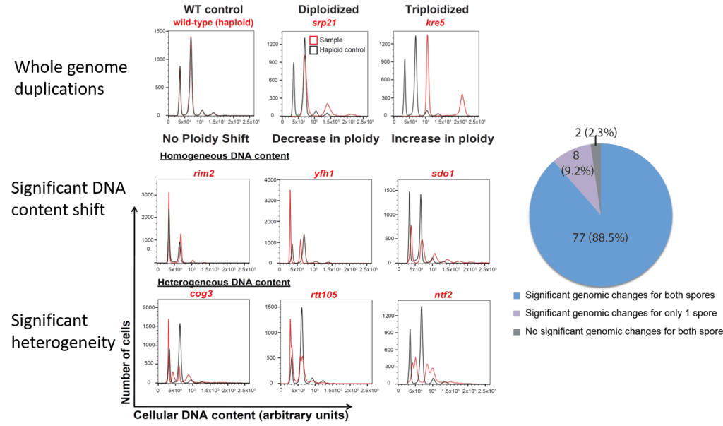 We analyzed more than 600 strains carried an evolvable gene deletion and discovered that the vast majority are aneuploid. These cells displayed different kinds of large scale genomic changes: whole genome duplication, disomy in haploids, monosomy in diploids, heterogeneous genome composition, etc. These observation suggested that these cells survived extreme stress- “essential gene deletion”- through aneuploidy.